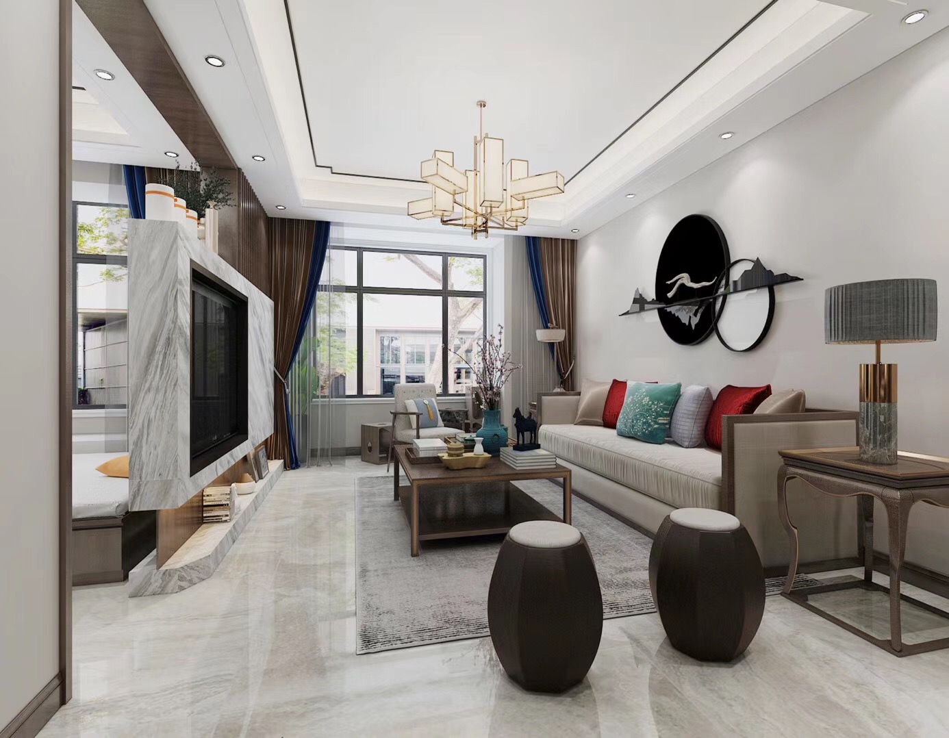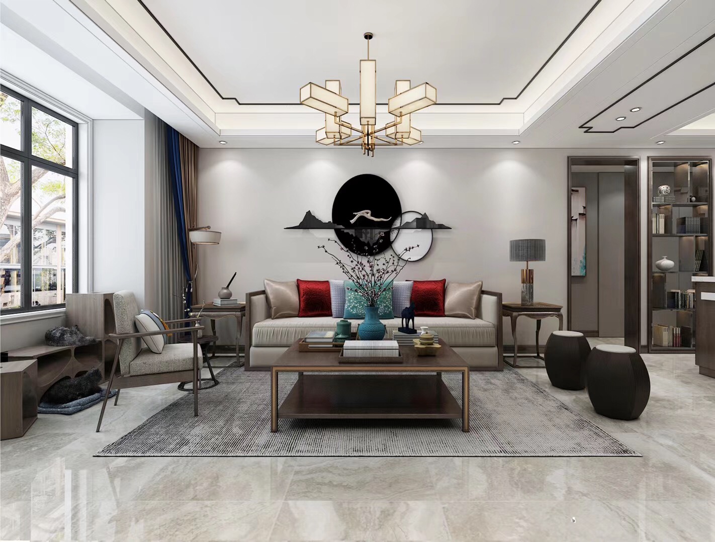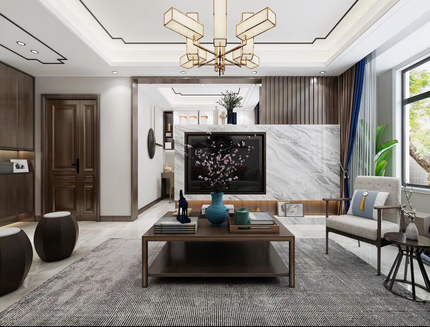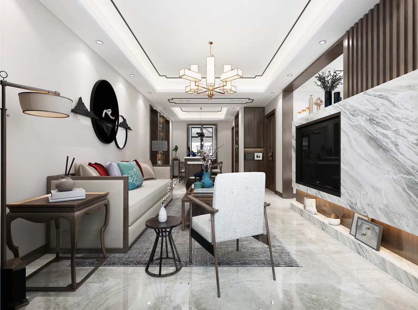 大眾上河灣145平三室兩廳兩衛(wèi)新中式風(fēng)格裝修,新中式風(fēng)格,既能滿足父母對(duì)中國(guó)風(fēng)的喜愛,又能滿足年輕人對(duì)現(xiàn)代感的需求。