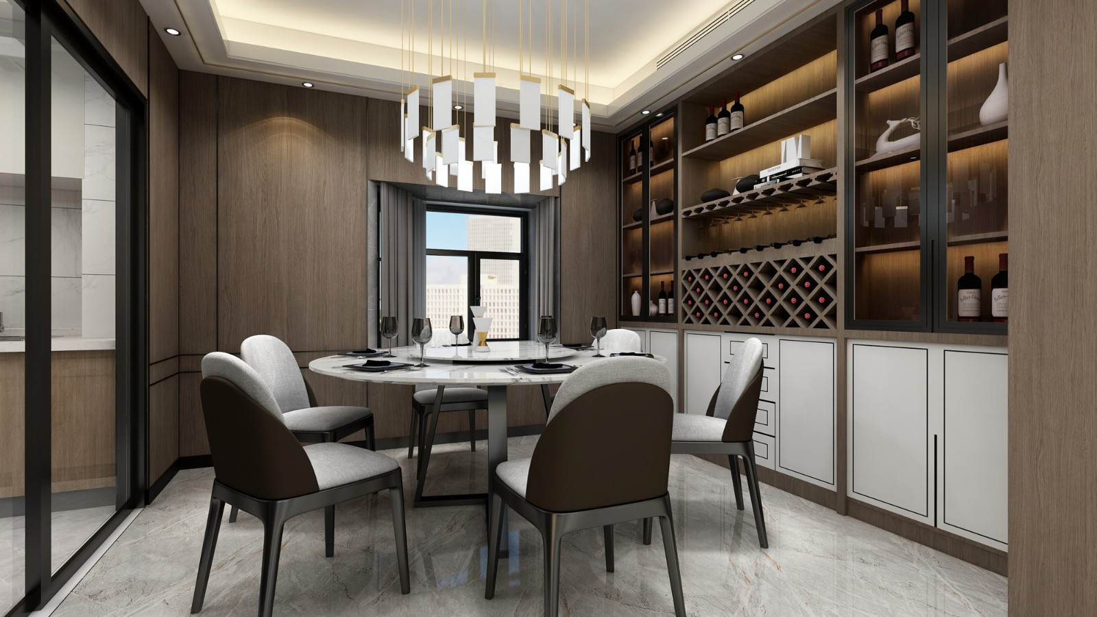 反其道而行,在餐廳里設置一組精致的吊燈,讓一家人就餐的氛圍更加濃烈。